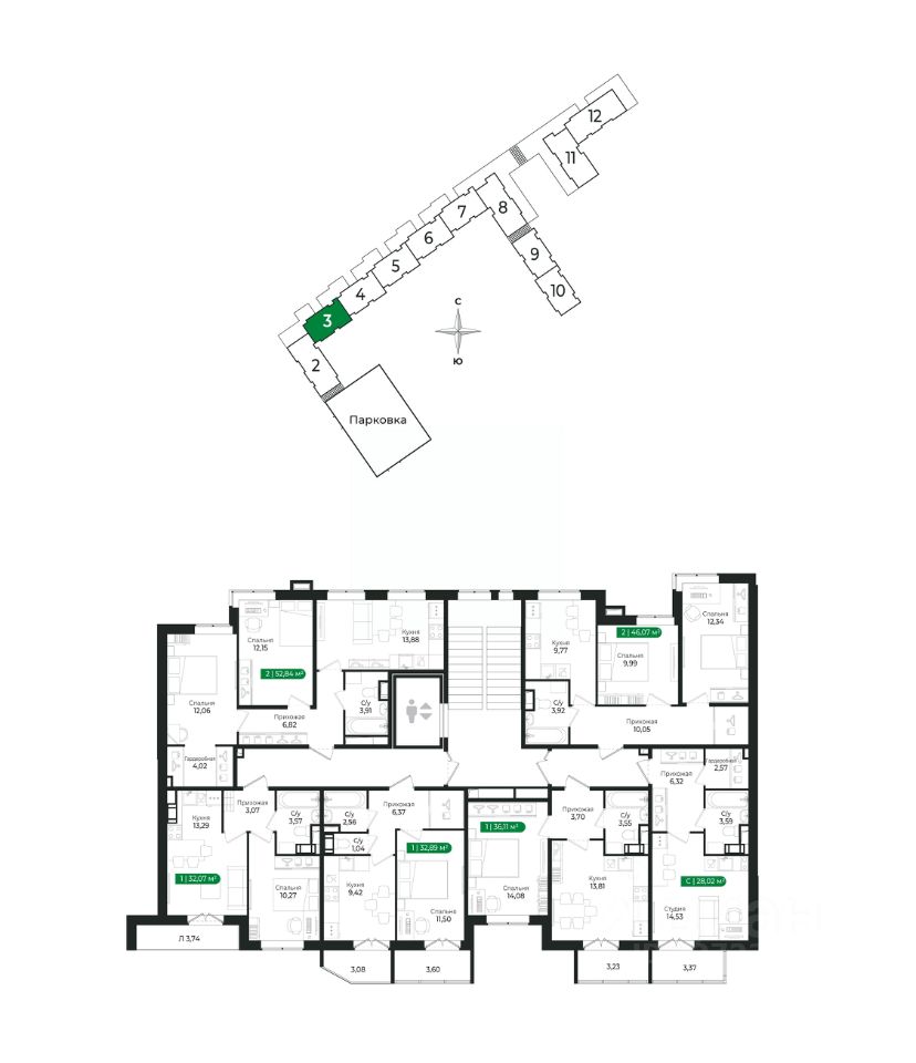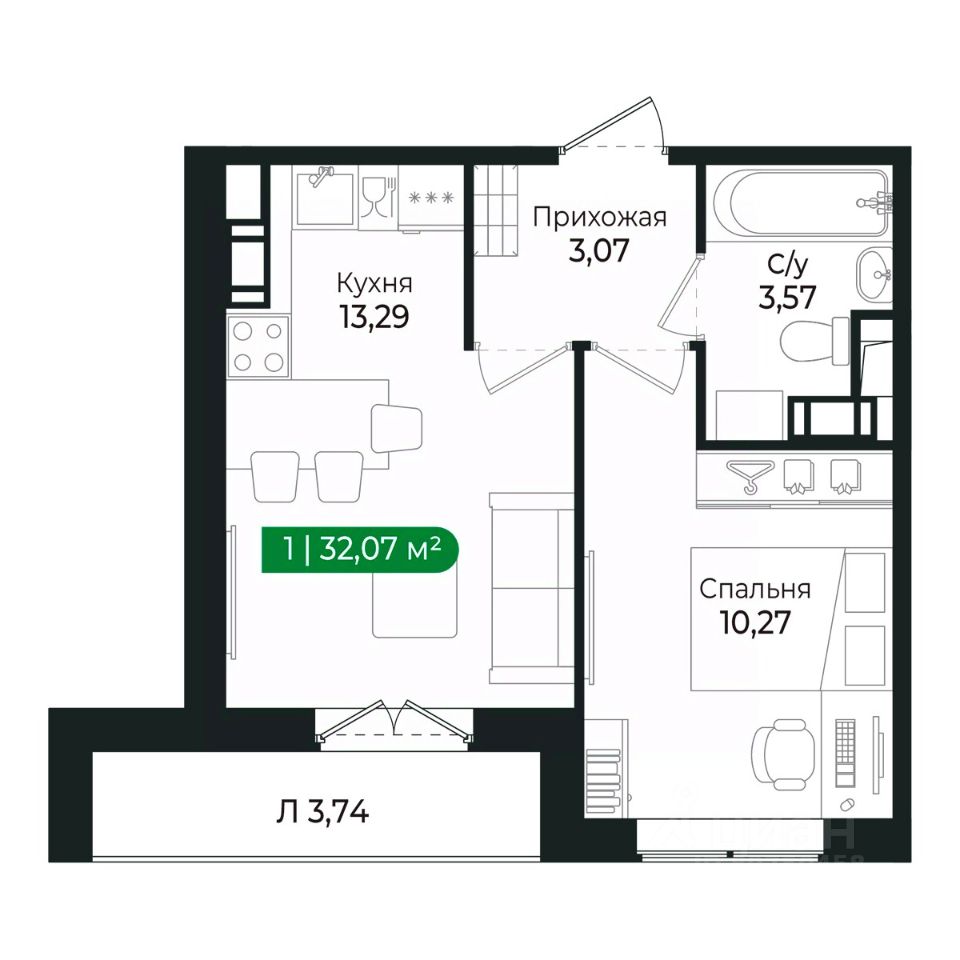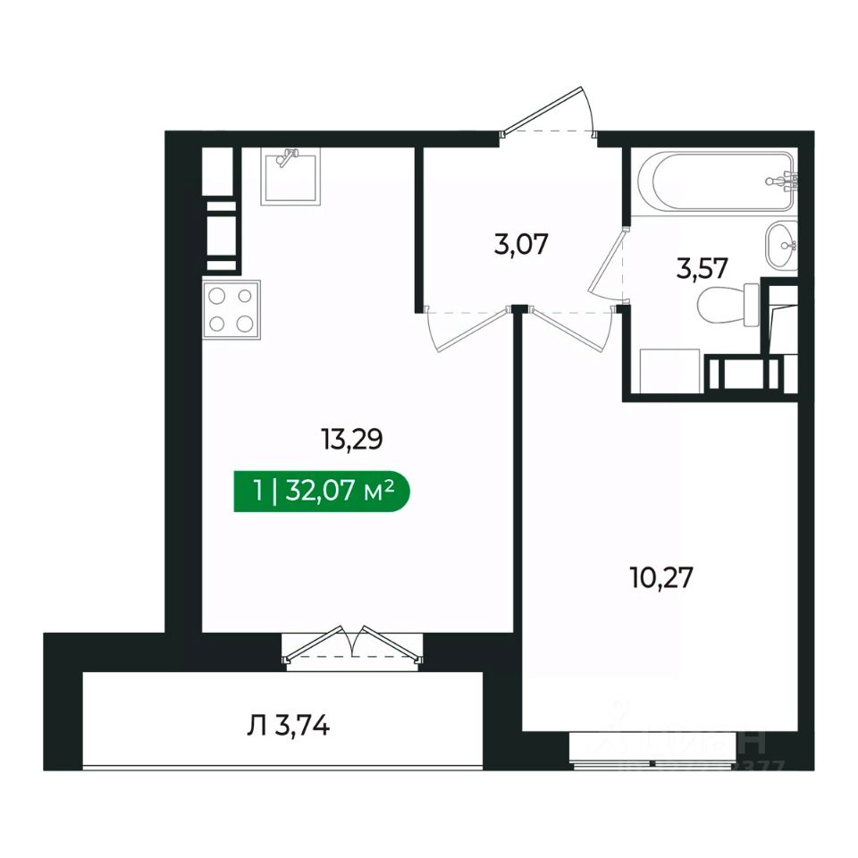 Напрямую продаётся уютная 1-комнатная квартира 42 общей площадью 32,07 м2 во II очереди в жилом комплексе Сертолово Парк от застройщика ГК Алгоритм.