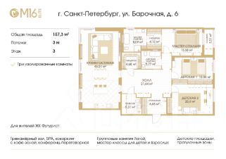 Общая площадь квартиры: 157,3 м2.