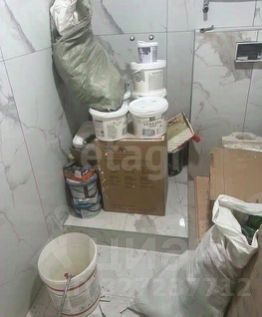 К объекту прилагаются уже приобретенные материалы, включая новый унитаз в упаковке и дверь для душевой кабины, что обеспечивает дополнительную экономию.