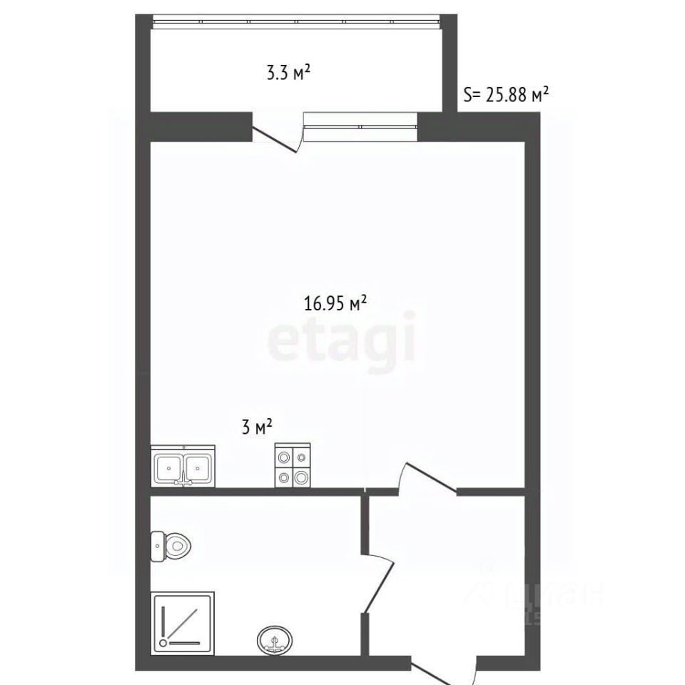 Продается просторная студия в ЖК "Прогресс", общей площадью 30 м2