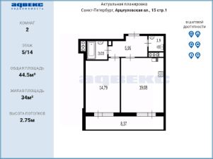 Квартира находится в " семейном корпусе" (всего шесть квартир на этаже, студий нет) ЖК Чистое небо, в микрорайоне с социально развитой инфраструктурой.
