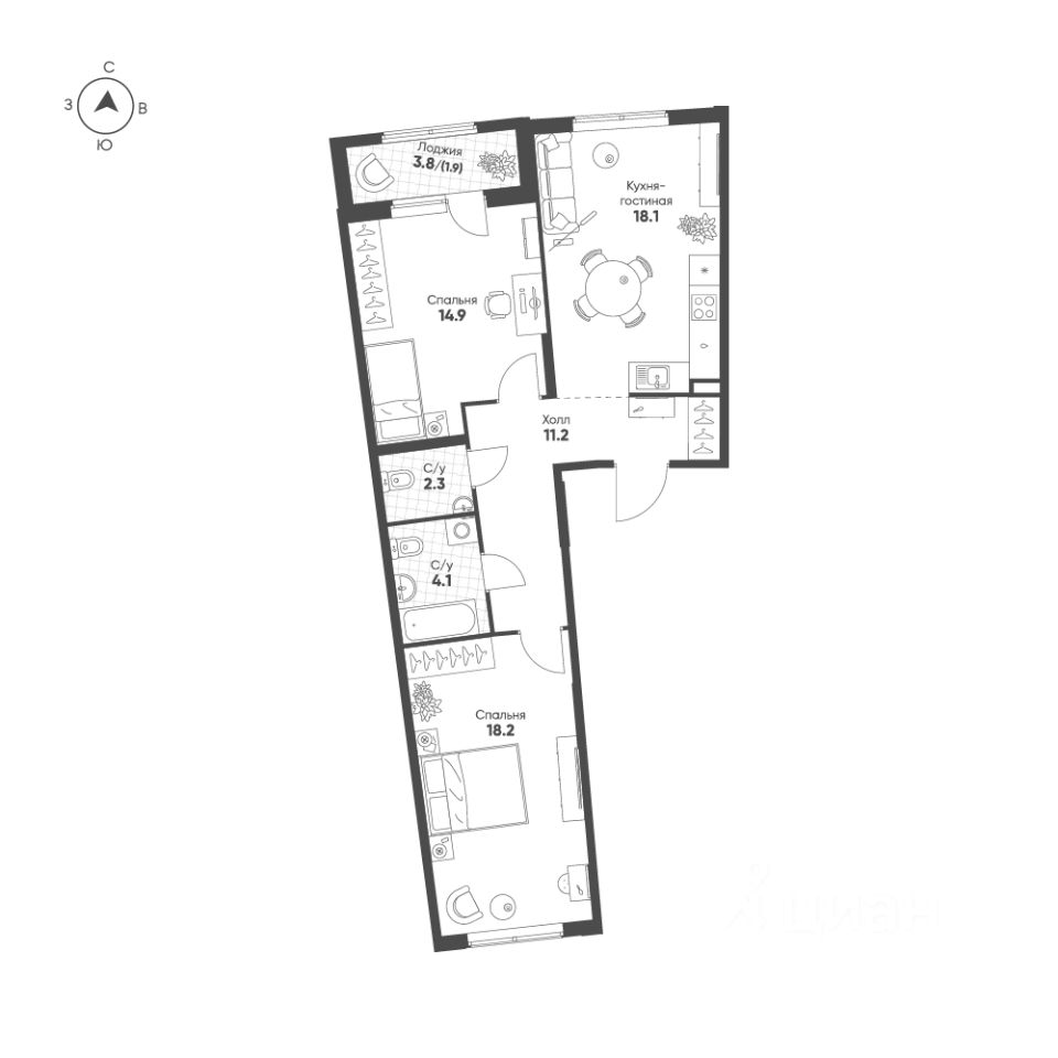 Продаётся 2-комнатная квартира в строящемся доме (участок 1.10, корпус 1), срок сдачи: IV-кв. 2028, общей площадью 70.7 кв.м., на 6 этаже. Ягодное Река Парк - новый масштабный проект от Группы "Эталон" на востоке Санкт-Петербурга.