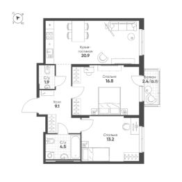 Продаётся 2-комнатная квартира в строящемся доме (Корпус 1.12), срок сдачи: IV-кв. 2028, общей площадью 67.1 кв.м., на 4 этаже. Ягодное Река Парк - новый масштабный проект от Группы "Эталон" на востоке Санкт-Петербурга.