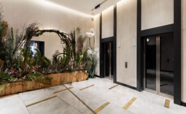 В жилом комплексе объединены общественно-деловое пространство, апарт-отель и резиденции для проживания. Здание высотой 8 этажей с подземным уровнем выполнено в современном стиле по монолитной технологии с вентилируемыми фасадами. Входные группы оформлены с использованием дизайнерских решений, установлены грузовые лифты.
