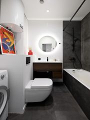 Качественная электрика, сантехника Jacob Delafon, полы в санузлах- с подогревом, керамогранит, стены- краска Little Green, в Мастер-спальне диммеры освещения, отдельно ванна и душевая.