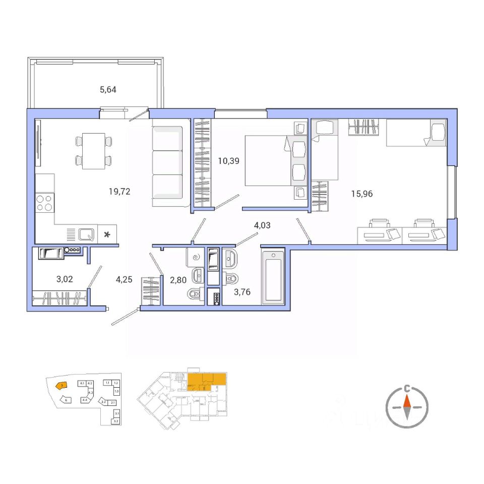 19,7 м²