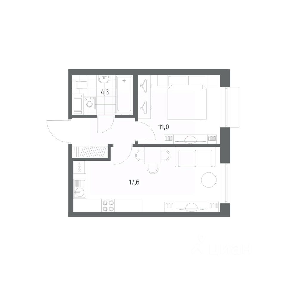 Продается квартира площадью 37.1 м²