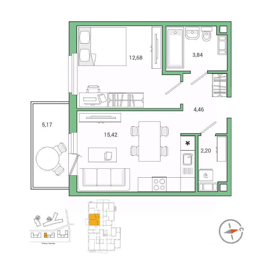 15,4 м²