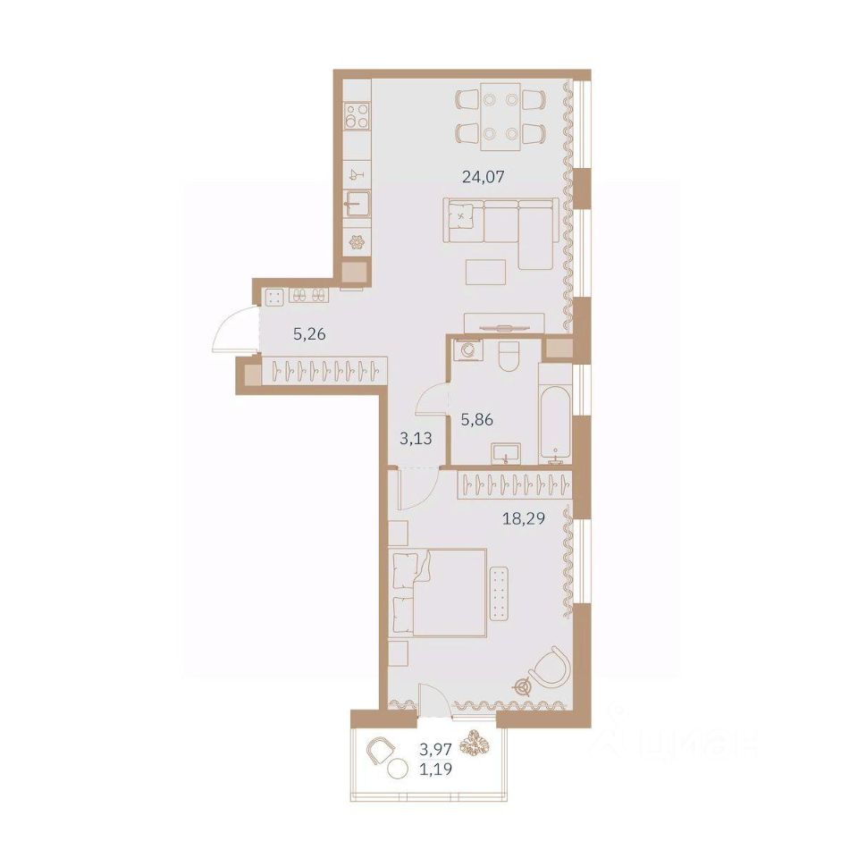 57,8 м²
