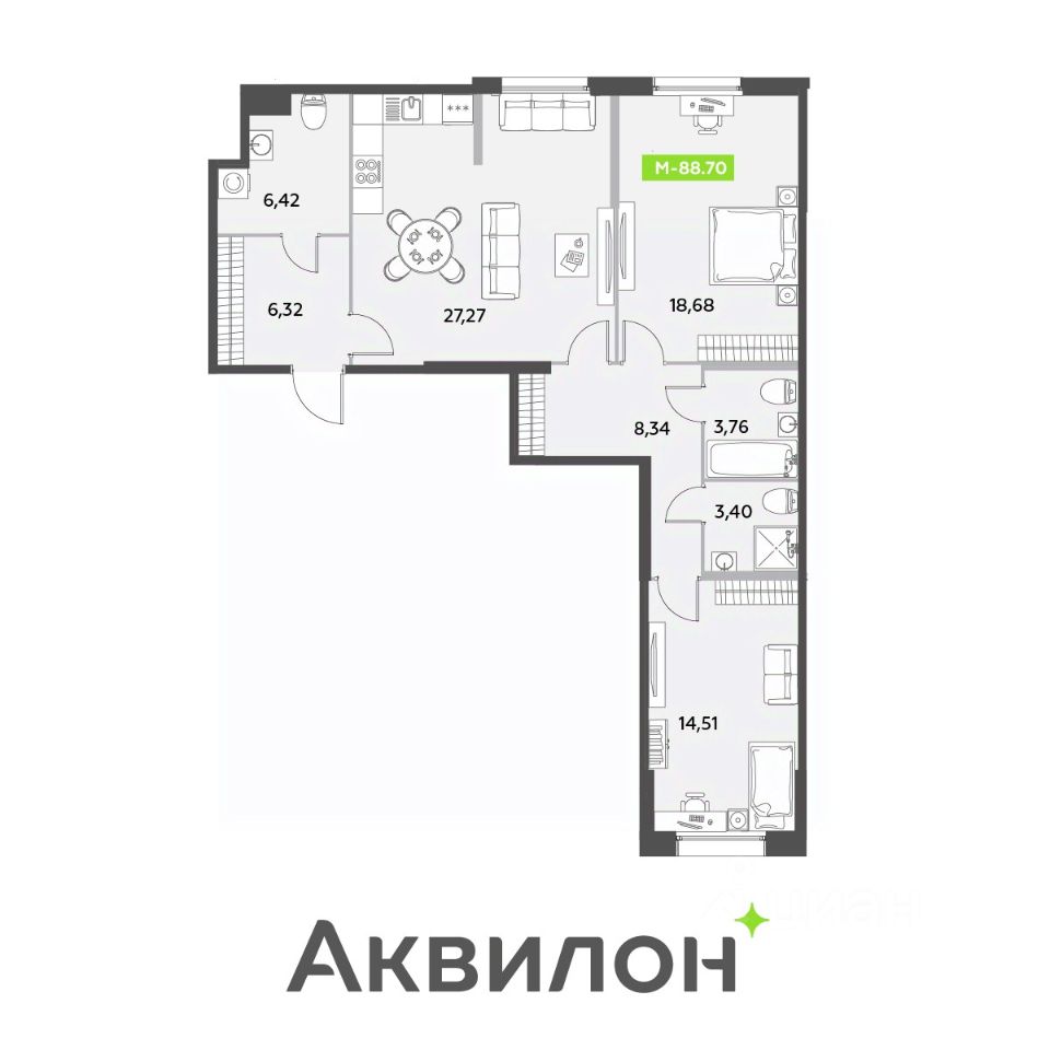 Продаётся 3-комнатная квартира в сданном доме (Аквилон Leaves), срок сдачи: I-кв. 2025, общей площадью 88.7 кв.м., на 1 этаже. Жилой комплекс "Аквилон Leaves" представляет собой 12-этажное монолитно-кирпичное здание. На территории дома предусмотрены детские игровые и спортивные площадки, зона для отдыха взрослого населения, озеленение, автостоянка и подземная парковка.