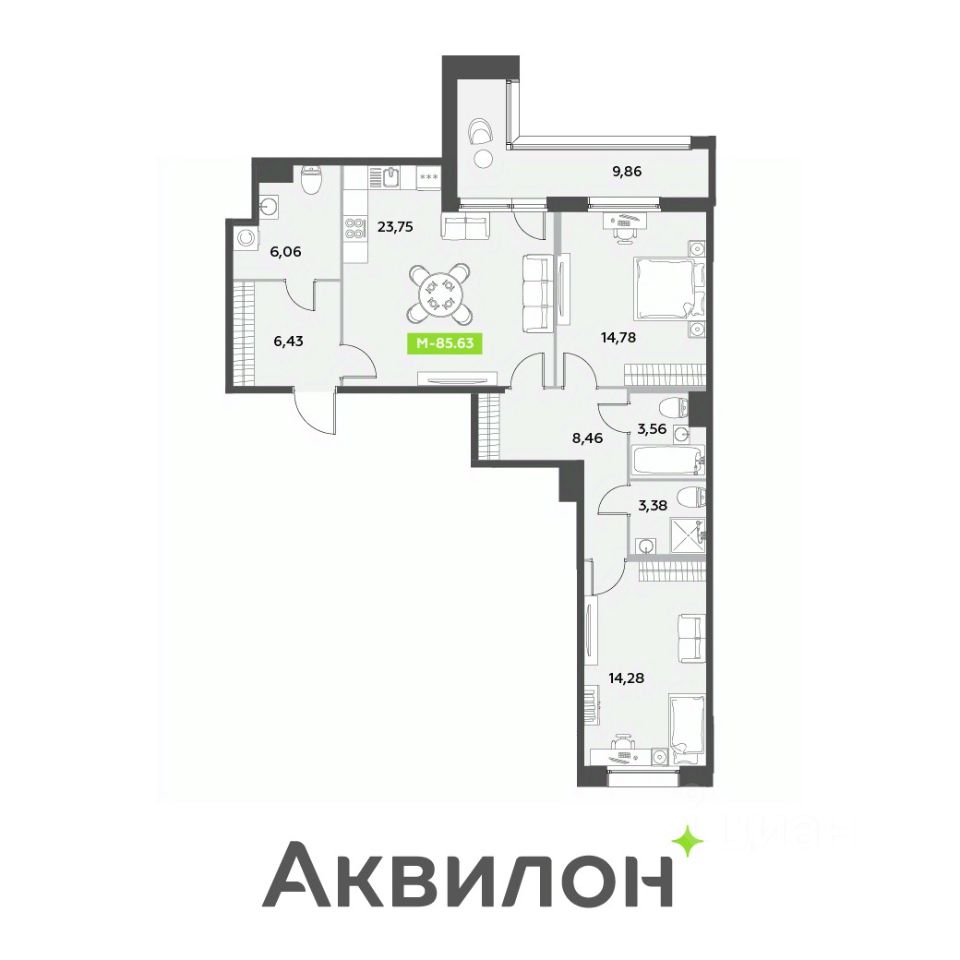 Продаётся 3-комнатная квартира в сданном доме (Аквилон Leaves), срок сдачи: I-кв. 2025, общей площадью 85.63 кв.м., на 7 этаже. Жилой комплекс "Аквилон Leaves" представляет собой 12-этажное монолитно-кирпичное здание. На территории дома предусмотрены детские игровые и спортивные площадки, зона для отдыха взрослого населения, озеленение, автостоянка и подземная парковка.