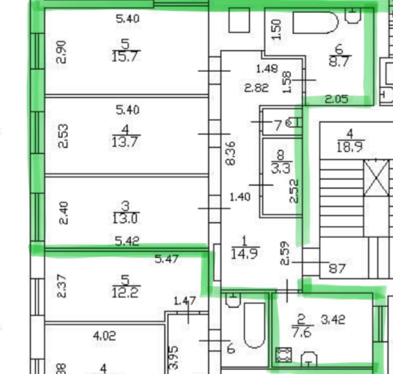 уютная квартира, общая площадь -78.1 КВ.м , кухня - 9 кв.м и три изолированные комнаты правильной формы: 17 КВ.м, 15 КВ.м и 15 КВ.м.