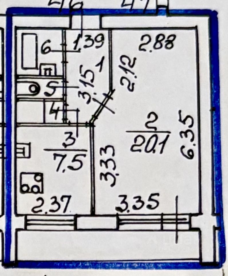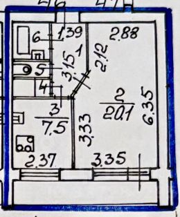 Площадь: Общая 35.5 м²+ лоджия 6м². Просторная комната 20.1 м², кухня 7.5 м².
