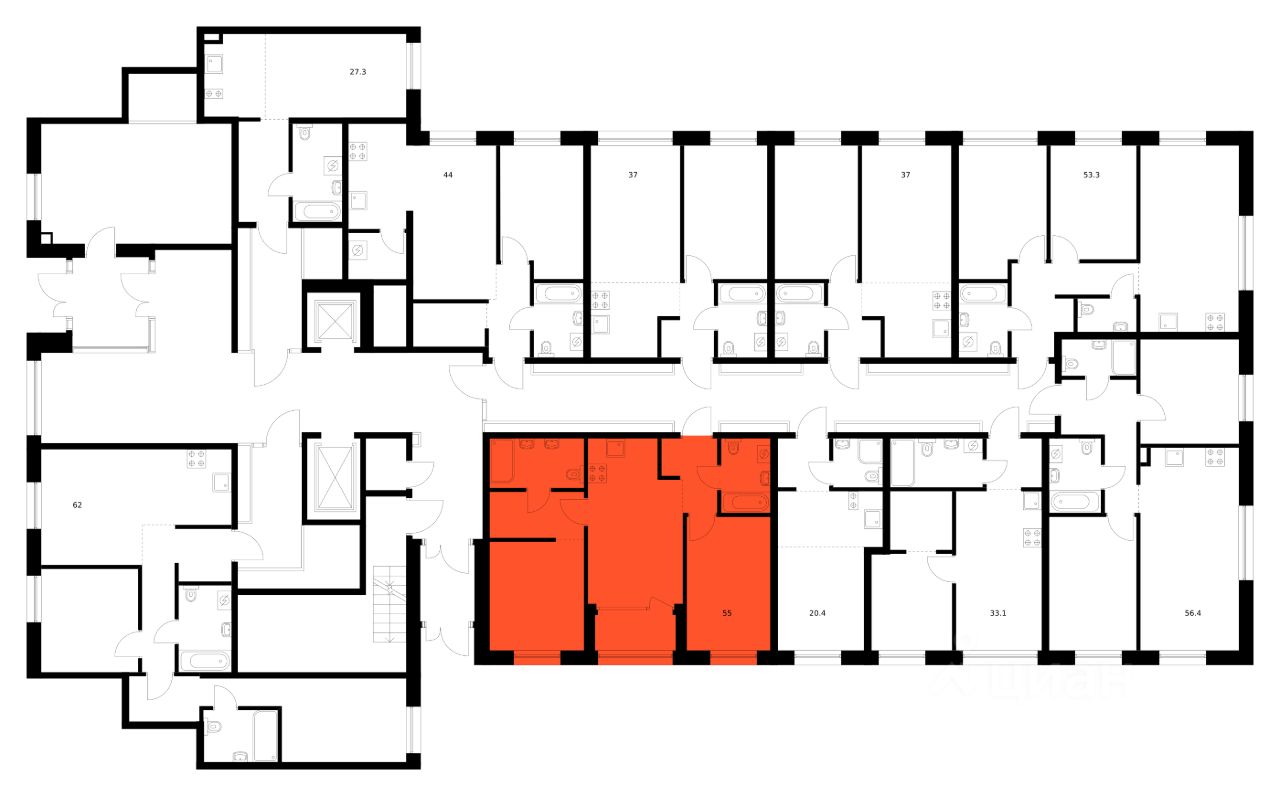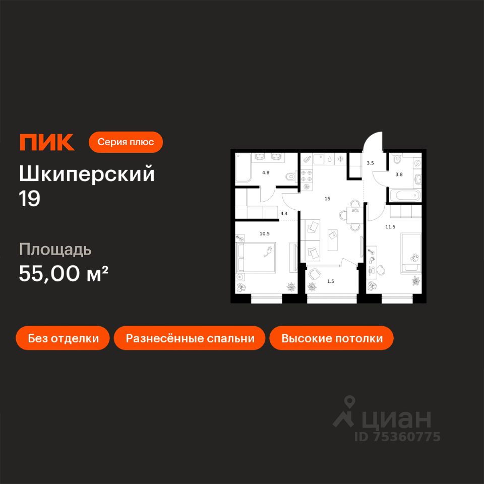 Продаётся 2-комн. квартира площадью 55 кв.м на 1 этаже 8 этажного дома (Корпус 2, Секция 3) проекта ПИК Шкиперский 19. Светлый просторный подъезд на уровне земли, функциональная планировка, большие окна, без отделки.