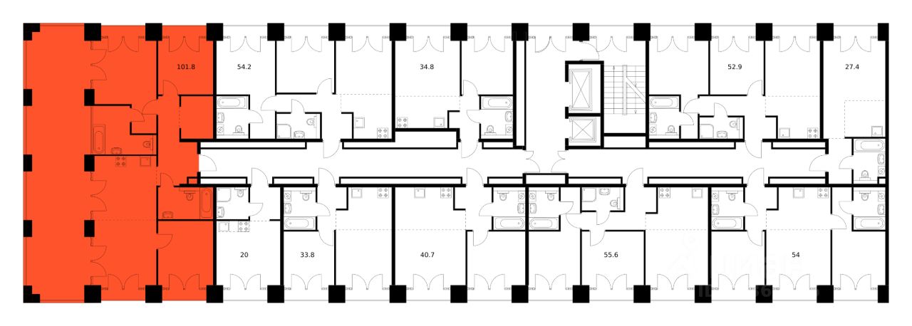 Продаётся 3-комн. квартира площадью 101,3 кв.м на 9 этаже 9 этажного дома (Корпус 1, Секция 6) проекта ПИК Лермонтовский 54. Светлый просторный подъезд на уровне земли, функциональная планировка, большие окна, предчистовая отделка.