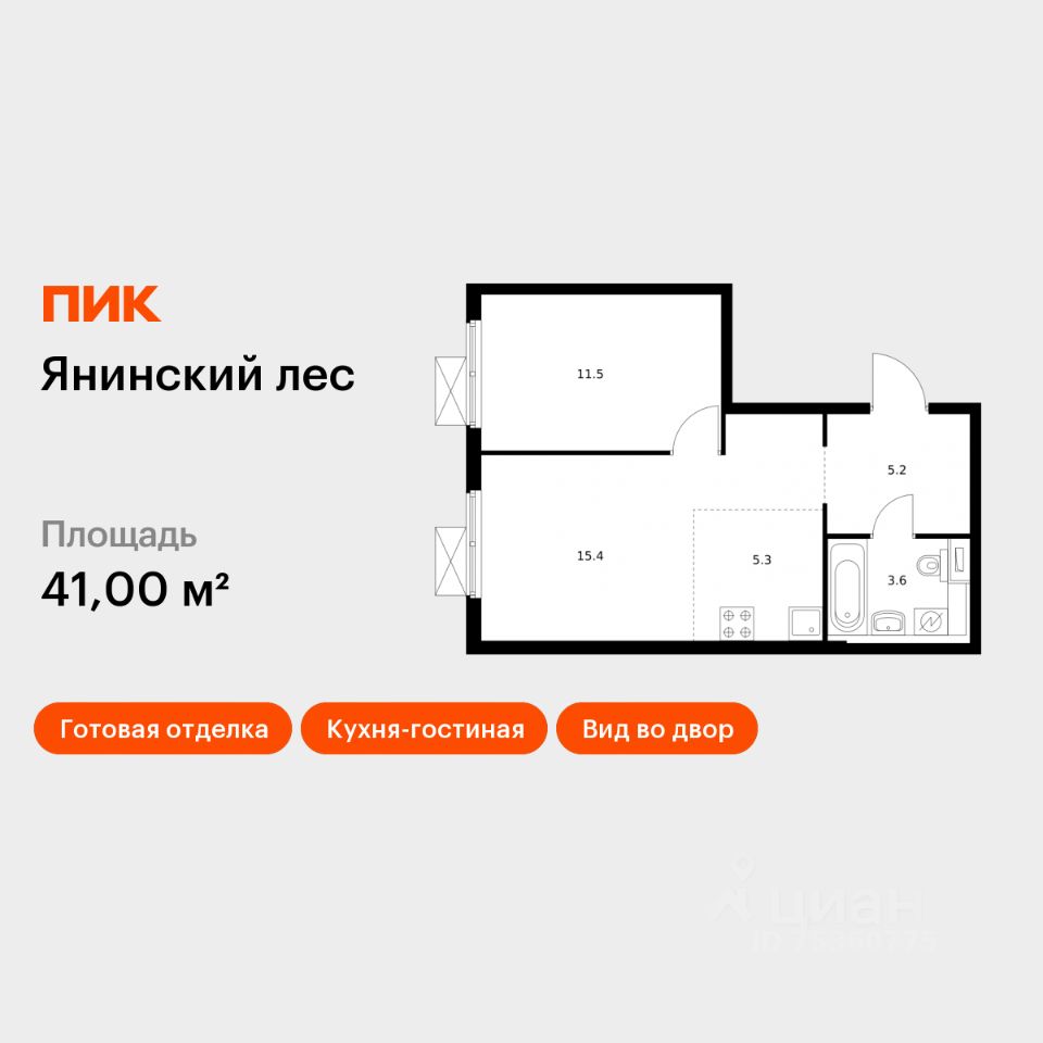 Продаётся 1-комн. квартира площадью 41 кв.м на 15 этаже 15 этажного дома (Корпус 6, Секция 3) проекта ПИК Янинский лес. Светлый просторный подъезд на уровне земли, функциональная планировка, большие окна, c отделкой.