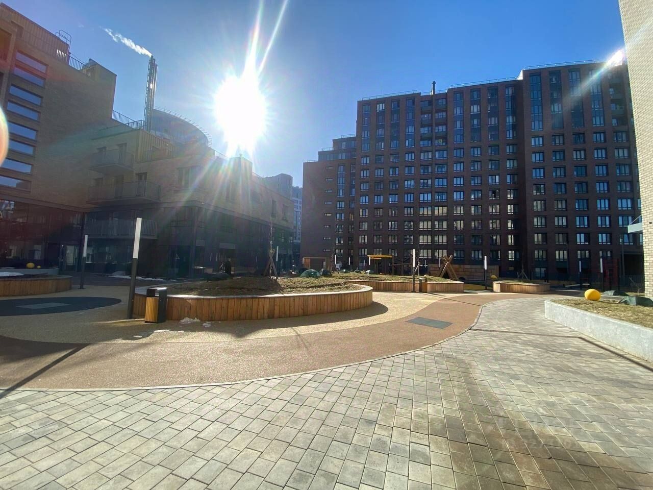 Закрытый двор без машин с детскими площадками.