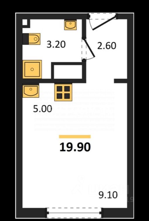 Общaя площaдь соcтавляет 19.9 кв. м.