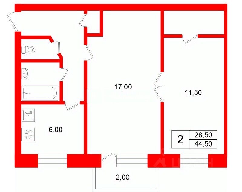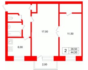 44,5 м²