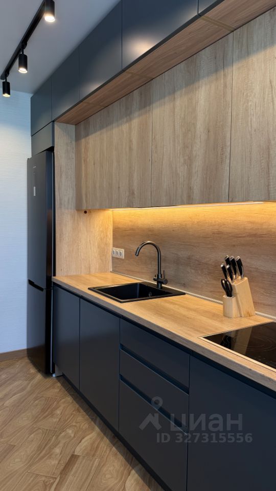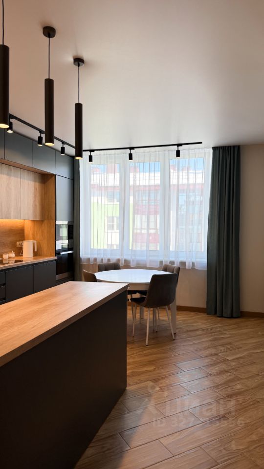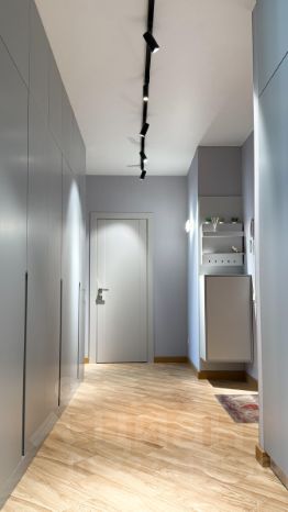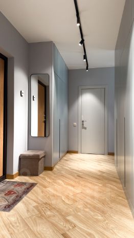 Интерьер выдержан в спокойной современной эстетике:натуральные текстуры дерева, продуманное освещение (трековые системы, подвесные светильники), качественные материалы отделки, единая концепция по всей квартире.