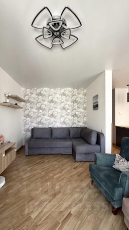 Гостиная зона логично отделена и читается как самостоятельное пространство, при этом сохраняется ощущение объёма и света. Удобный формат как для одного человека, так и для пары или семьи с ребёнком.
