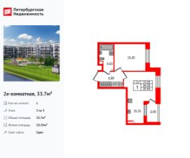 Продается уютная 1-комнатная квартира в жилом комплексе "Парадный ансамбль" в престижном Московском районе. До метро можно добраться на транспорте всего за 20 минут. Удобная, классическая, функциональная европланировка, большая кухня-гостиная 15.1 м², просторная прихожая 4.58 м². Общая площадь квартиры - 33.7 м², жилая 10.35 м², высота потолка 2.77 м. Квартира продается с отделкой "Норд Лайн светлый". Что особенного в ЖК "Парадный ансамбль"? • Инновационный Лицей Setl с оригинальной архитектурной концепцией и уникальной образовательной средой • Масштабное малоэтажное строительство в престижном Московском районе • Рекреационные зоны: парадный парк в центре квартала, ручей с собственной набережной, центральная площадь, ресторанный комплекс и пешеходный бульвар • Фасады из керамогранита и кирпича с яркими и акцентными входными группами • Две самые большие площадки Setl Kids и Setl Sport • Уникальные квартиры.High Flat на последних этажах, палисадники у квартир на первом этаже, семейные секции, квартиры с саунами и окном в ванной