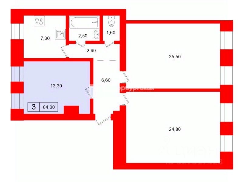 Площадь комнат