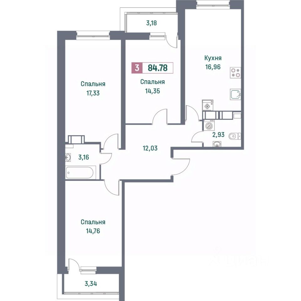 Площадь кухни17,8 м²
