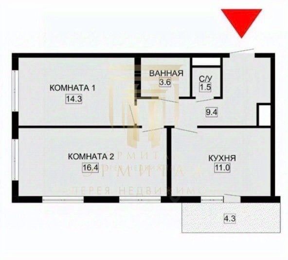 С кухни выход на лоджию 3,5 кв.м