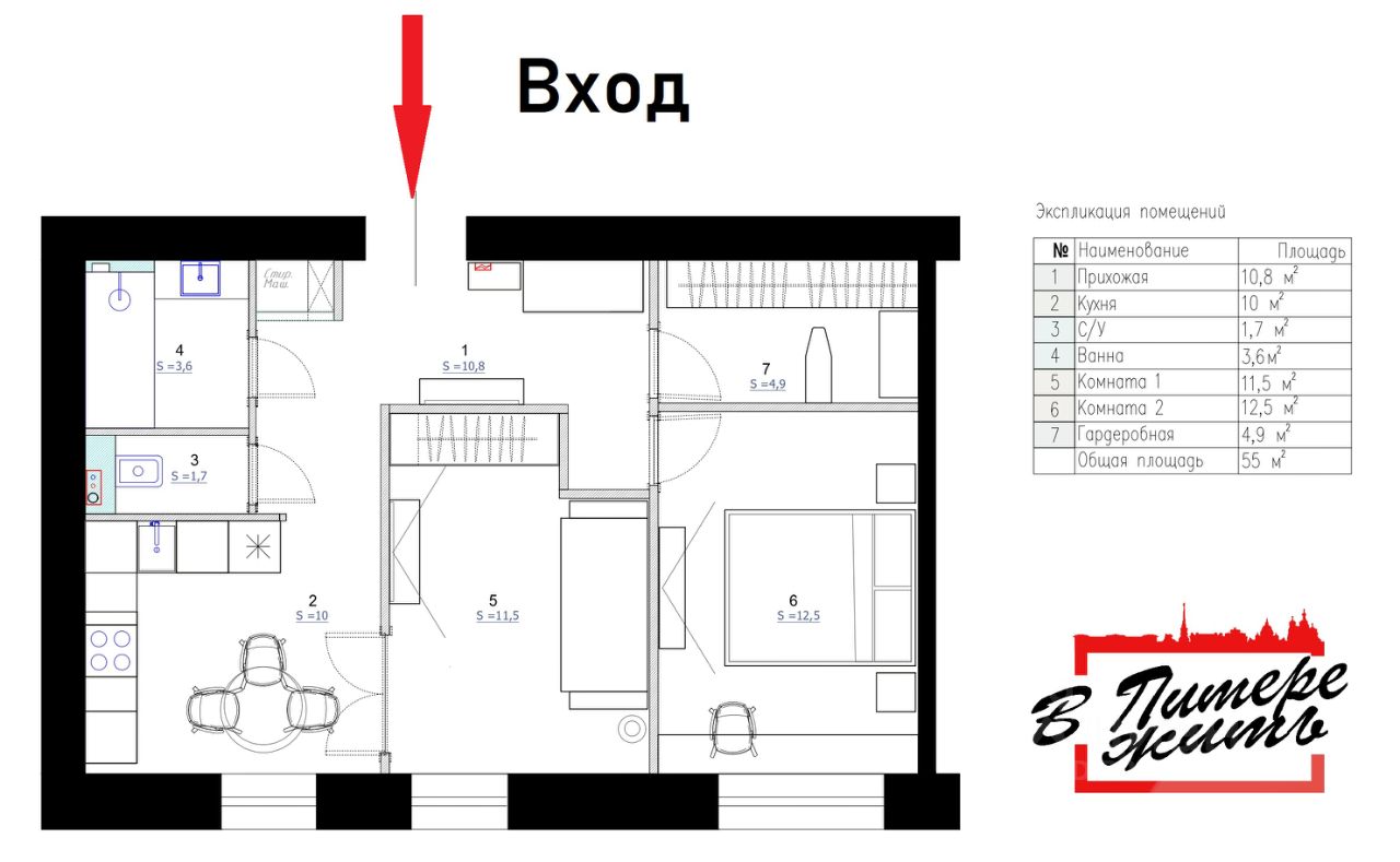 Сталинка 1952 года постройки. Есть лифт. В квартире был произведен полный демонтаж до несущих перегородок (демонтированы пол, стены, инженерные коммуникации, газ и тд.).