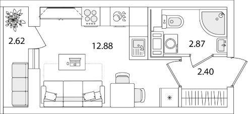 Квартира находится в 9 этажном доме, в Очередь 1, Корпус 1 на 4 этаже. Общая площадь квартиры 19,46 кв.м.