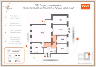 Квартирография преимущественно большой нарезки: на этаже до 3 квартир, от 4 до 7 комнат.