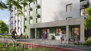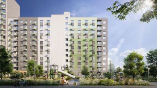 Между домами будут устроены бульвары, пешеходные и велодорожки, игровые и спортивные площадки, зоны отдыха для детей и взрослых. На первых этажах находятся колясочные, магазины, кафе и сервисные службы.