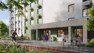 Между домами будут устроены бульвары, пешеходные и велодорожки, игровые и спортивные площадки, зоны отдыха для детей и взрослых. На первых этажах находятся колясочные, магазины, кафе и сервисные службы.