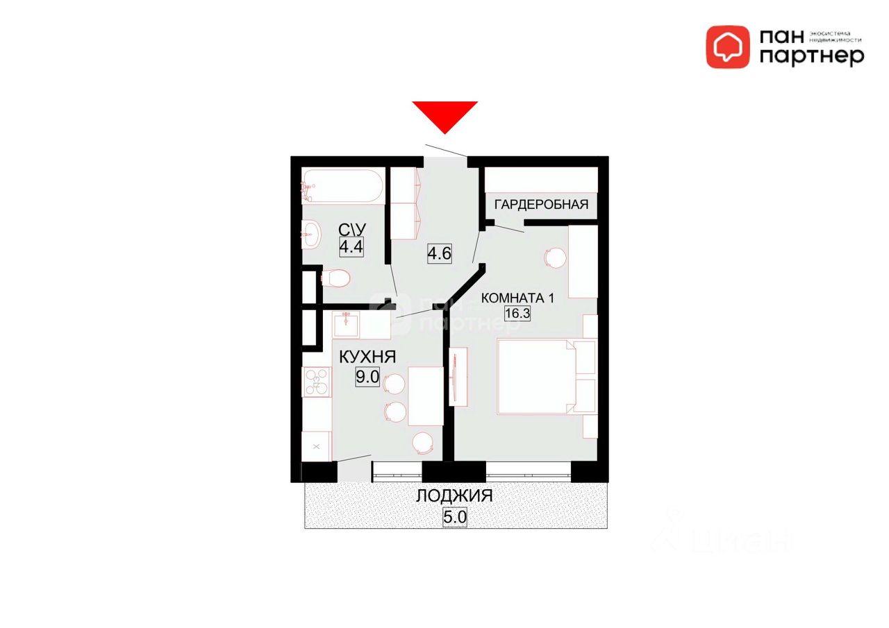 А вместе с лоджией пространство увеличивается до 39 м², где можно обустроить уютный уголок для отдыха.