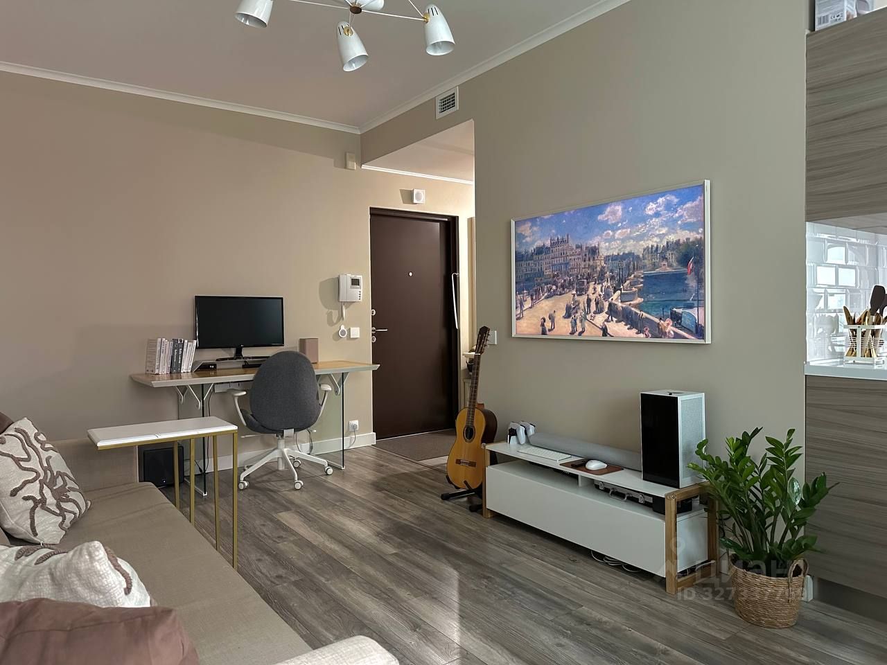 В квартире выполнен современный ремонт из качественных материалов, на кухне установлена столешница из искусственного камня, посудомойка, в гостиной телевизор-картина со скрытыми проводами, в ванной есть сушильная машина.