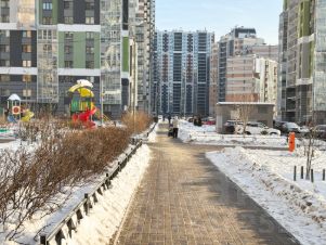 благоустроенная территория - детские и спортивные площадки, футбольное поле, баскетбольная площадка, ландшафтный дизайн, велопарковки у каждой парадной, видеонаблюдение.