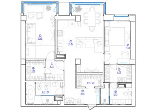 Квартира общей площадью 95.8 м2, расположена на 6 этаже, вид на просторный зеленый двор.