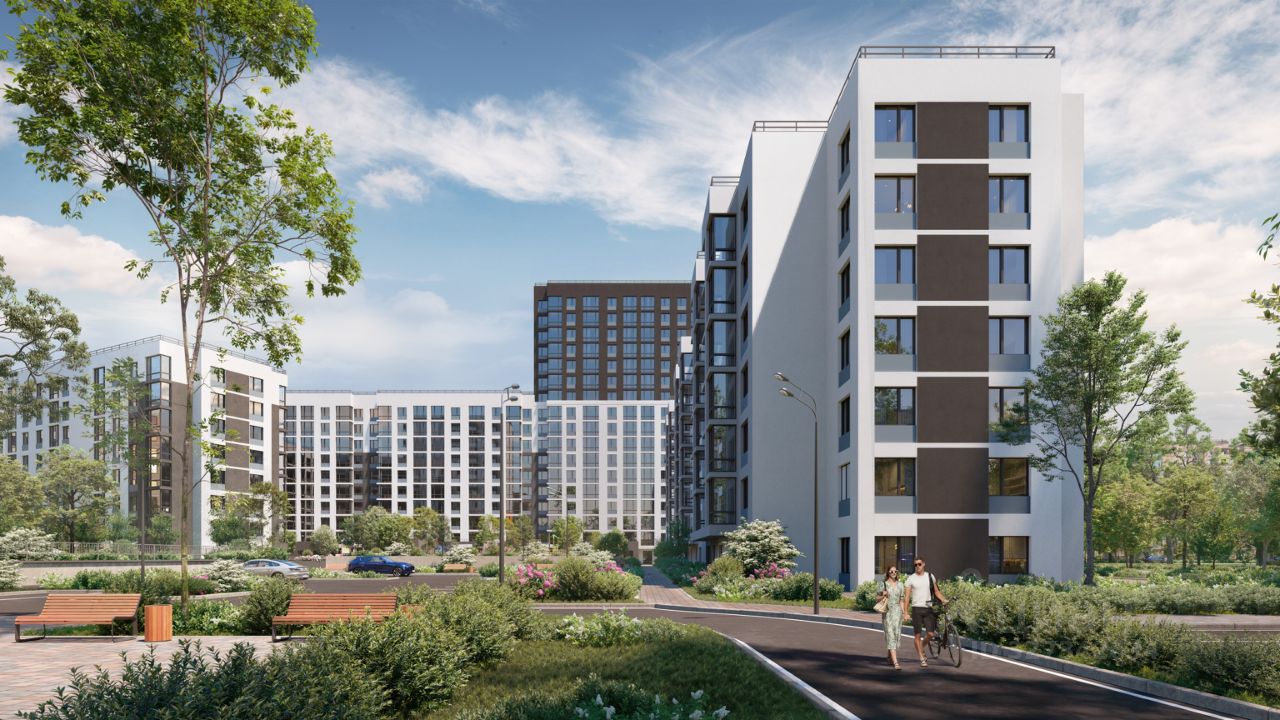 Совсем скоро в квартале появится четвертая очередь проекта. В отделке корпусов от 7 до 17 этажей мы будем использовать декоративную штукатурку и бетонный камень серых тонов. Такие фасады станут магнитами для притяжения солнечных лучей. Много света будет и в квартирах, а с балконов и лоджий приятно разглядывать закатное и рассветное небо.