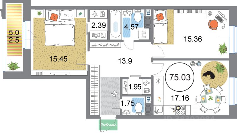 Продаётся 3-комнатная квартира в сданном доме (Дом 54 (Корпус 3)), срок сдачи: I-кв. 2023, общей площадью 75.03 кв.м., на 8 этаже. О квартале