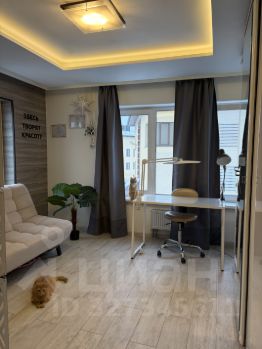 Комната с большими окнами, что дает много естественного света, по всей квартире теплый пол. Мебель Дядьково, площадь грамотно разделена на зоны сна, отдыха и работы.