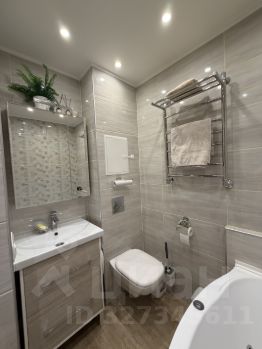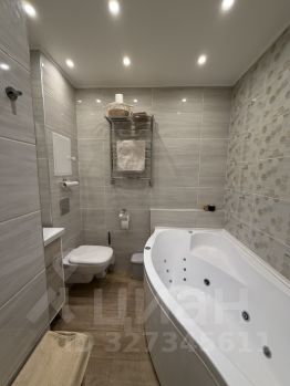 Ванная комната оборудована ванной-джакузи и подвесным унитазом. Стиральная машина Bosch.