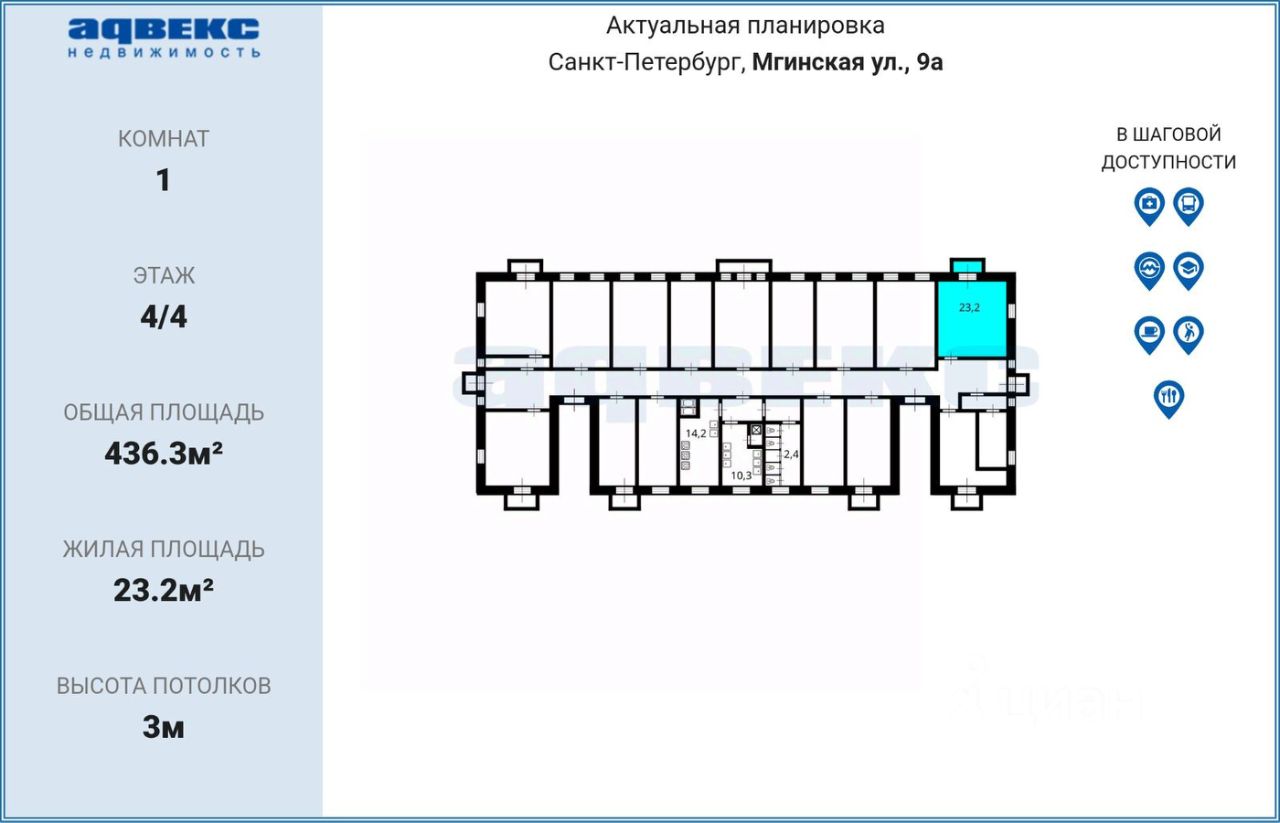 В прямой продаже комната в Сталинском доме СО СВОЕЙ КУХНЕЙ и ЗОНОЙ ХРАНЕНИЯ !