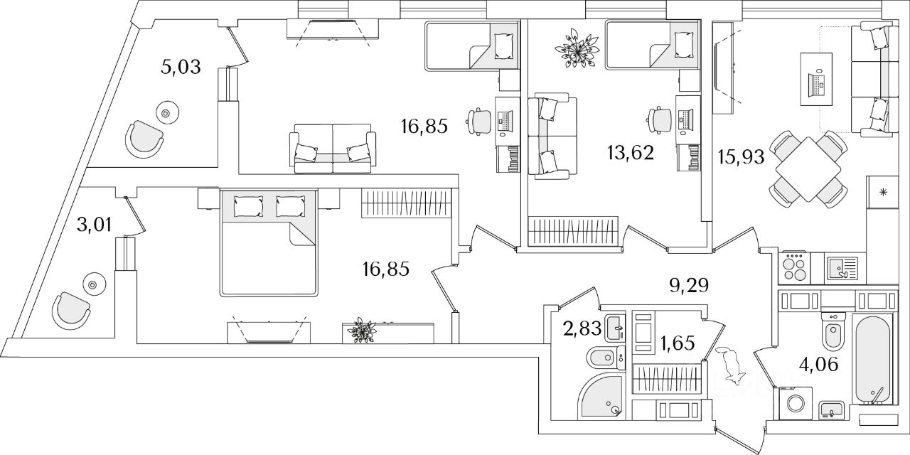 В доме представлен широкий выбор квартир от студий до трехкомнатных, в том числе уникальные лоты: квартиры с мастер-спальнями, квартиры-студии с двумя окнами и с возможностью зонирования, квартиры с окном в ванной, квартиры с террасами, квартиры с просторной кухней-гостиной 20-27 кв.м. Предлагаются варианты с чистовой, предчистовой (white box) отделкой и без отделки.