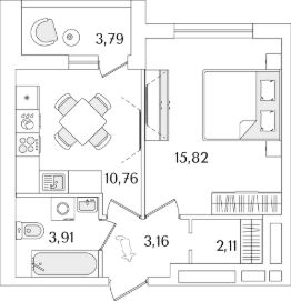 Квартира находится в 17 этажном доме, в ЛайнерЪ на 6 этаже. Общая площадь квартиры 37,70 кв.м.