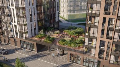 На эксплуатируемой кровле на уровне первого этажа в домах 1 и 4 будут обустроены общественные видовые террасы.