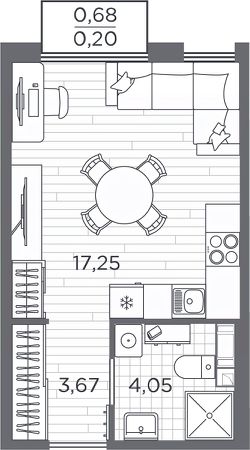 Продается 1-комн. квартира-студия с отделкой в ЖК "PLUS Пулковский" на 5 этаже. Общая площадь: 25.93 кв.м. Высота потолков 2.75 м.