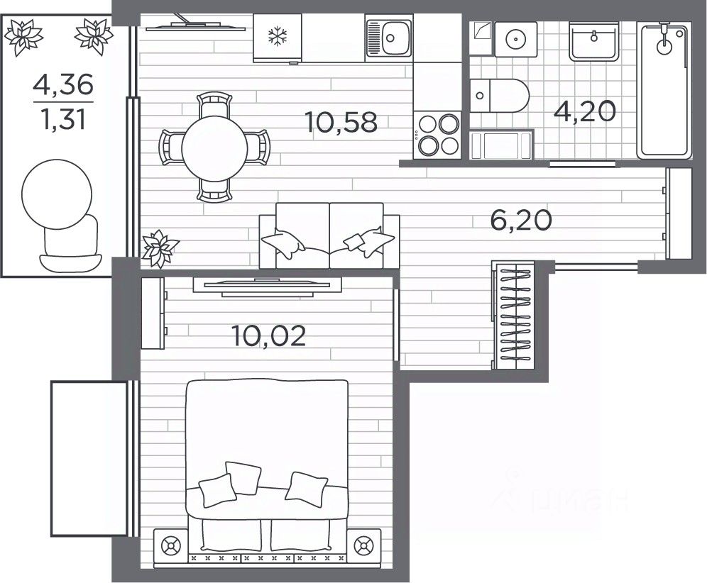 Однокомнатная квартира с отделкой в ЖК "PLUS Пулковский" на 5 этаже. Общая площадь: 32.82 кв.м. Высота потолков 2.75 м.