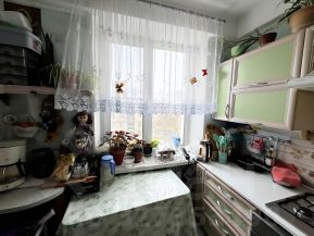 Кухня оснащена газовой плитой и необходимой мебелью. Санузел раздельный, оборудован современной душевой кабиной и стиральной машиной. В прихожей предусмотрен вместительный шкаф для верхней одежды, над входом есть антресоль.