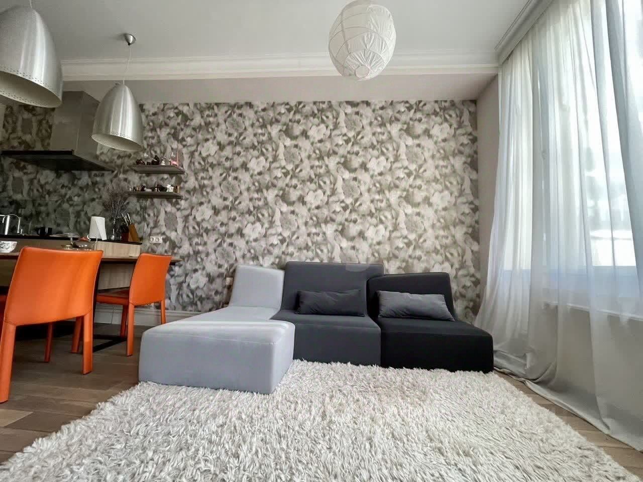 Просторные кухня-гостиная и комната с выходом на общую большую террасу с финским раздвижным панорамным остеклением.